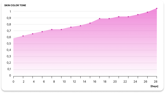Výsledek po 28 dnech: sjednocení barevnosti pleti a redukce nedokonalostí o 95 %